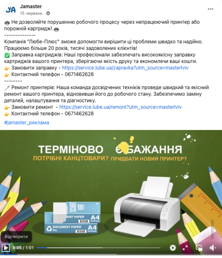 Тематична реклама послуг приватного майстра у групі “Шукаю майстра Львів⚡ Jamaster”